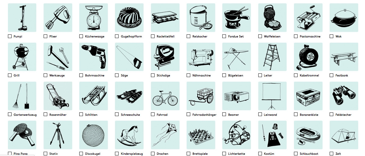 Nicht nur Angebote in der Grauzone der Legalität sorgen aber dafür, dass das Heranwachsen sogenannter «Sharing Communities» und einer «Share Economy» zunehmend ins Bewusstsein der Öffentlichkeit rückt. Mit Couchsurfing hatte AirBnB einen berühmten Vorläufer, über dessen Netzwerk Reisende in der ganzen Welt eine Couch zum Übernachten fanden – Gastfreundschaft ganz ohne kommerzielle Hintergedanken. Der Trend des Urban Gardening wiederum rückt die gemeinsame Nutzung und Pflege von Grünflächen in der Stadt in den Fokus. Und mit der Nachbarschaftsinitiative Pumpipumpe hat ein junges Berner Designkollektiv von sich reden gemacht: Wer eine Velopumpe, eine Bohrmaschine oder ein Fondue-Caquelon besitzt, tut dies mit einem Sticker an seinem Briefkasten kund.